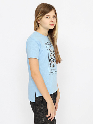 OVERSIZE футболка для девочки с короткими рукавами и удлиненной спинкой.В нижней части боковых швов обработаны разрезы. Перед футболки декорированы принтом.