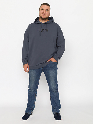 Толстовка мужская прямого силуэта со спущенным плечом, рукава с манжетами. Капюшон с функциональным шнурком. Притачной пояс. Полочка декорирована принтом.